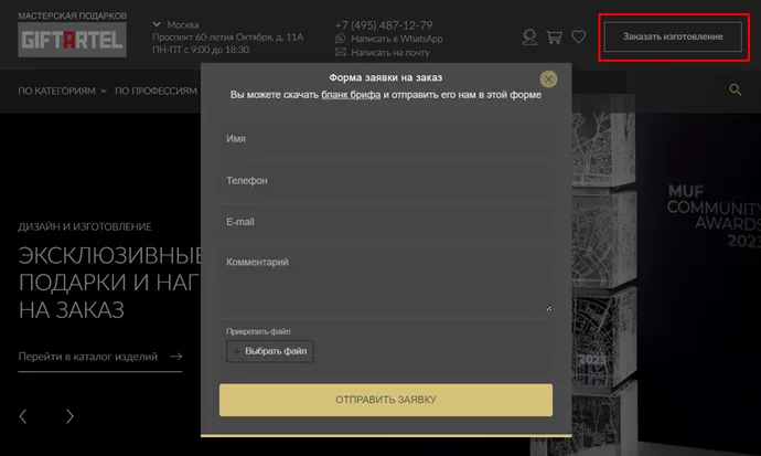 Мастерская подарков GiftArtel order@masterskayapodarkov.ru +7(499) 226 90 15 г. Москва, пр-кт 60-летия Октября, д. 11а. м. Академическая или м. Ленинский проспект