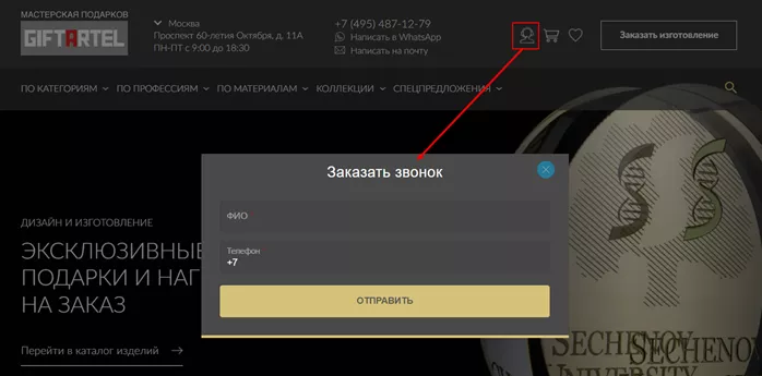1. Заказ обратного звонка на нашем официальный сайте;