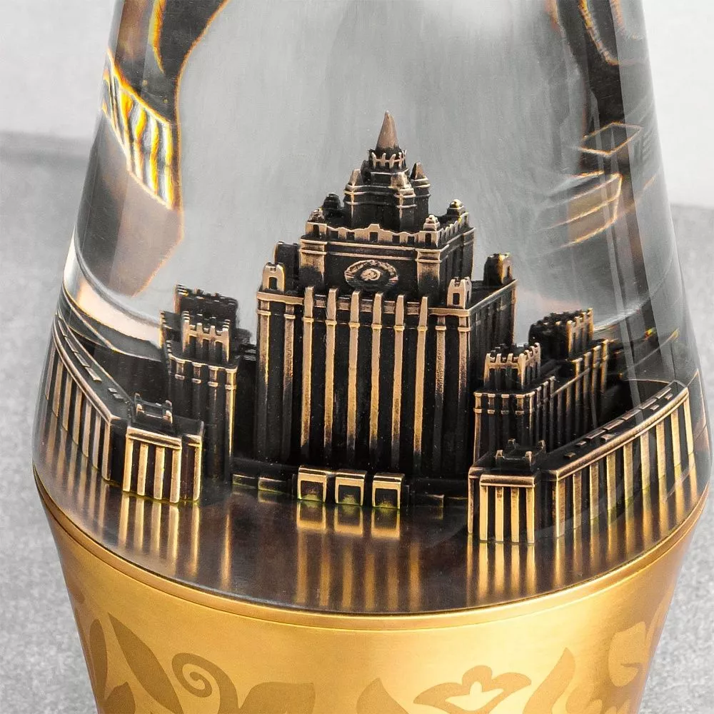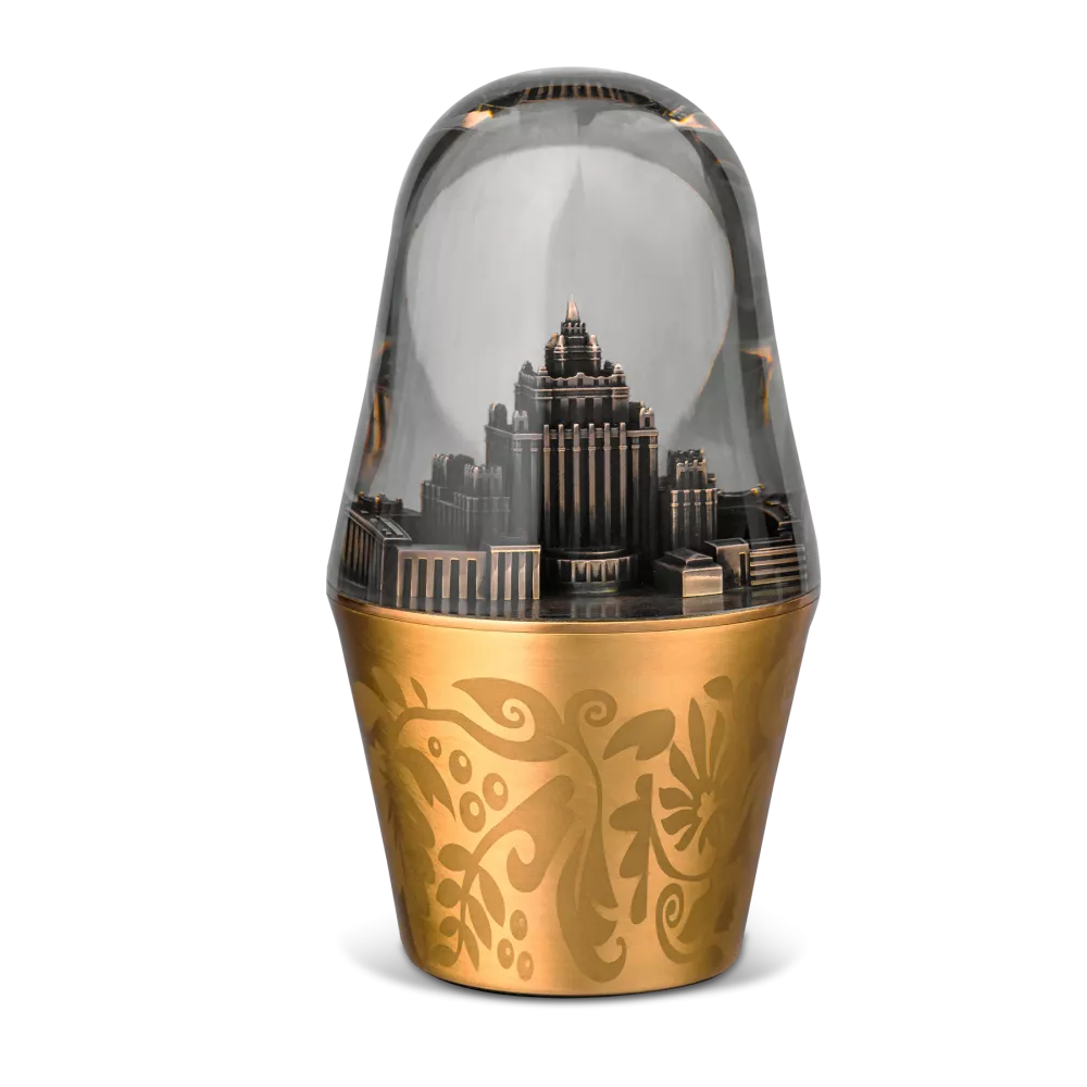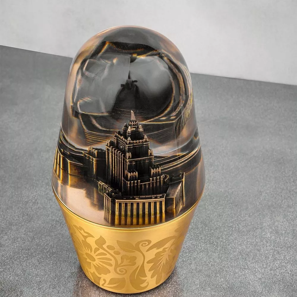 Внутри – миниатюрная копия государственного здания, созданная с применением современных технологий 3D-моделирования и художественного литья, что придает ей точность, детализацию и высокий эстетический уровень.