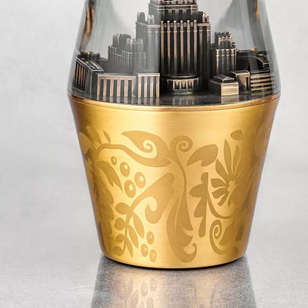 Основной корпус: нижняя часть – из сатинированной латуни, украшена богатым народным орнаментом, выполненным в традиционных стилях, что подчеркивает культурную ценность и национальную идентичность.
