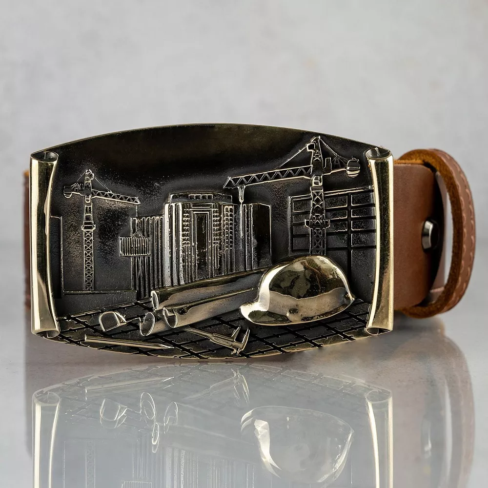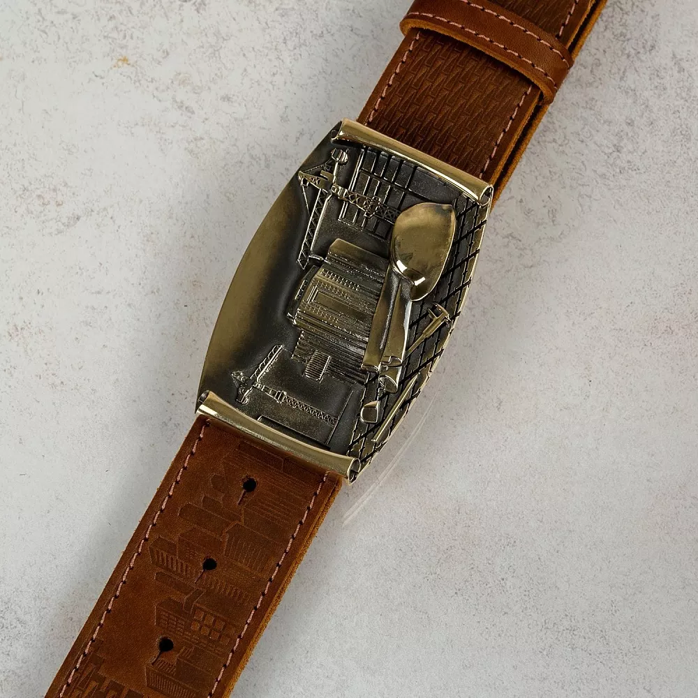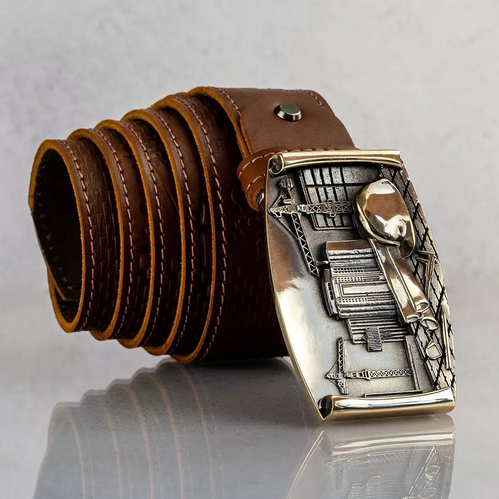 Ремень "Строителю" - это результат ручной работы мастеров нашего производства и авторского дизайна собственной художественной студии с вниманием к каждой детали. Оригинальный ремень полностью ручной работы, украшенный латунной пряжкой, выполненной методом художественного литья. Произведение искусства, результат ручной работы мастеров нашего производства и авторского дизайна собственной художественной студии с вниманием к каждой детали.
