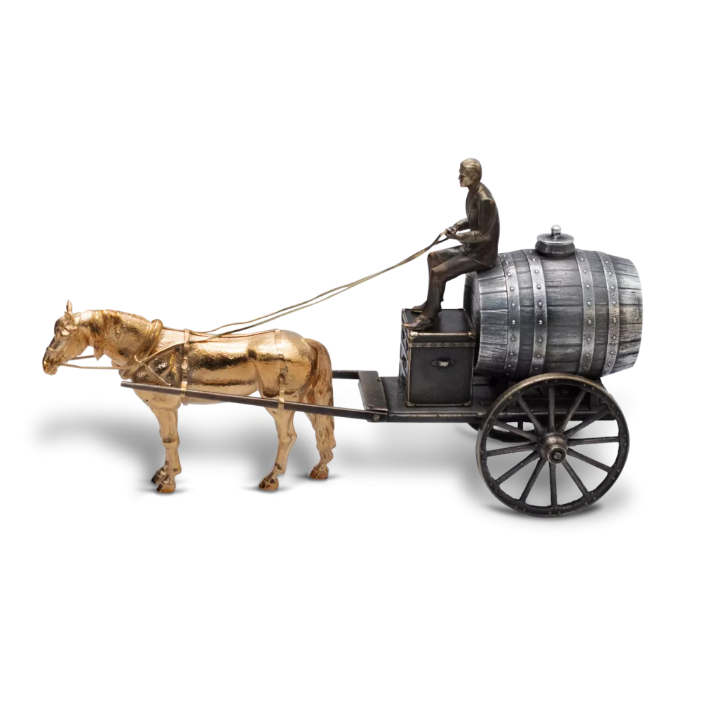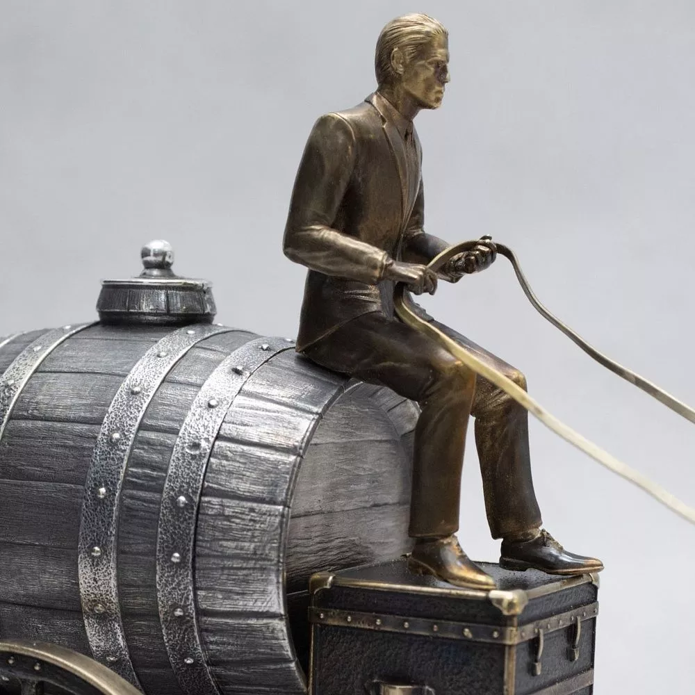 История российской нефти началась задолго до появления первых трубопроводов и танкеров. Еще в XVIII веке на севере, в районе реки Ухты, рудознатец Федор Прядунов основал первый в России нефтяной промысел, где нефть собирали вручную и перевозили в дубовых бочках . Наша статуэтка «Первая нефть» — это дань уважения тем героическим временам, когда каждый баррель добывался и перевозился с огромным трудом. В композиции мастерски переплетены эпохи: старинная повозка с дубовыми бочками, на которых изображен российский герб, и извозчик в современном костюме. Этот контраст символизирует связь времен — от первых шагов русской нефтянки до сегодняшних достижений отрасли.