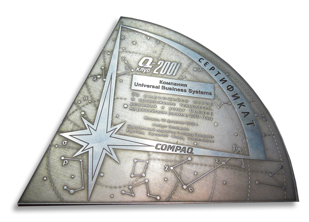 Стильный подарок имеет необычную форму и исполнение. Такой сувенир будет особенно приятно получить партнеру, так как он снабжен памятной именной надписью, выражающей благодарность за вклад в развитие дела и высокие достижения. Изделие выполнено из металла. С помощью химической гравировки нанесены надписи и схематичные рисунки, которые исключительно долговечны и устойчивы. В студии «GiftArtel» вы можете также заказать изготовление дипломов из различных материалов.