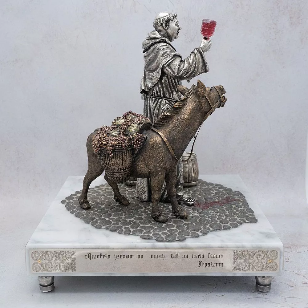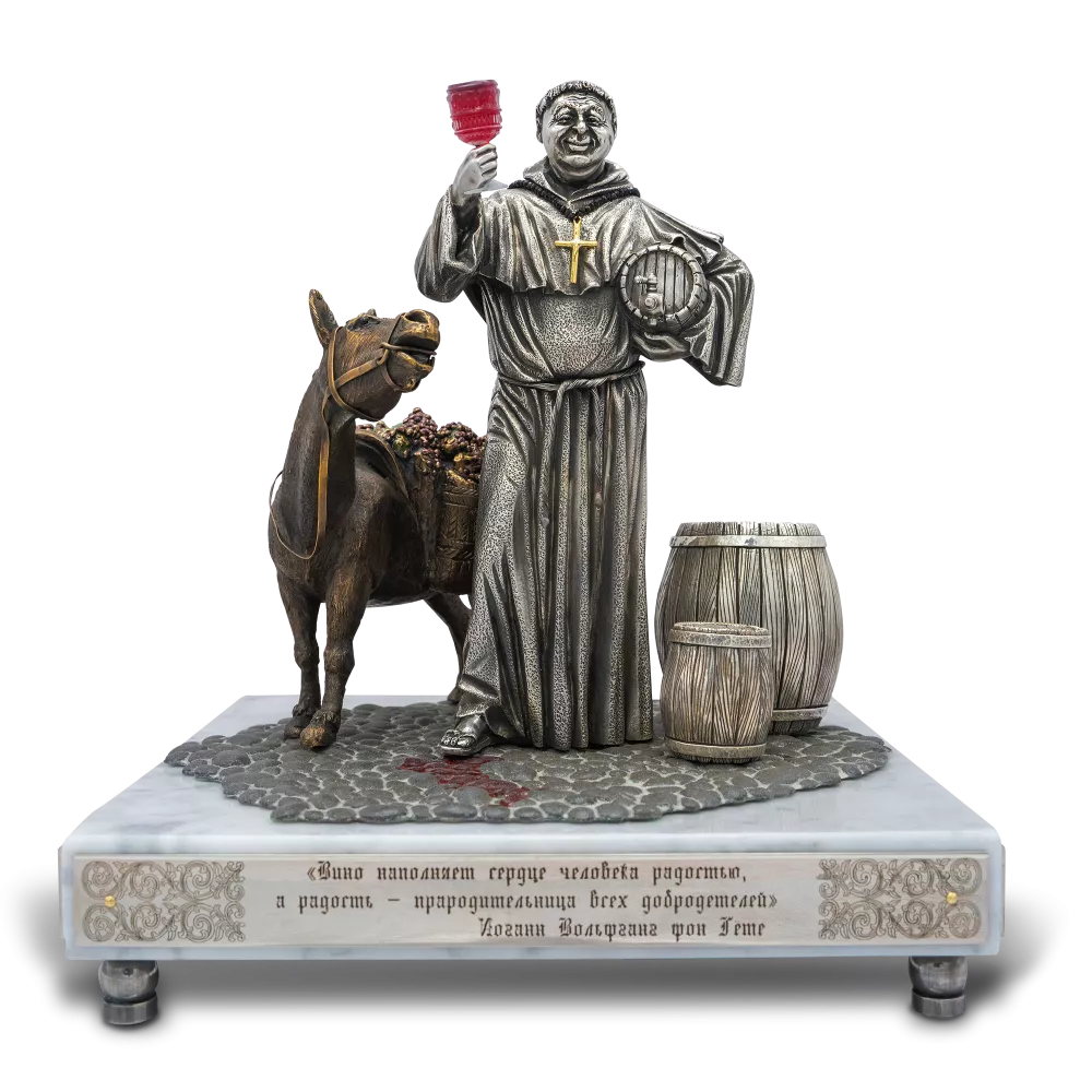 Это произведение передает художественную трактовку исторического пути виноделия в Европе: после падения Римской империи виноделие пришло в упадок, а варварские племена вырубали виноградники. Устав Святого Бенедикта VI века, предписавший монахам жить собственным трудом, стал поворотной точкой, позволившей вину стать необходимым для причастия, гостеприимства, лекарства и как валюты.