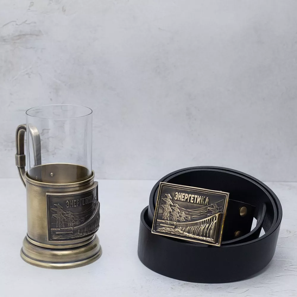 - Ремень мужской из натуральной кожи с литой бронзовой пряжкой. На пряжке запечатлены символы энергетической отрасли: гидроэлектростанция с ее монументальными плотинами и линии электропередач, несущие свет в каждый дом. Рисунок выполнен с ювелирной точностью — это не схема, а настоящее произведение искусства. Бронза подвергнута глубокому патинированию, отчего выглядит не новодельным блеском, а благородным металлом, впитавшим историю индустрии. Кожа натуральная, плотная, элитная — с годами она станет только мягче и красивее, приобретая индивидуальный оттенок.