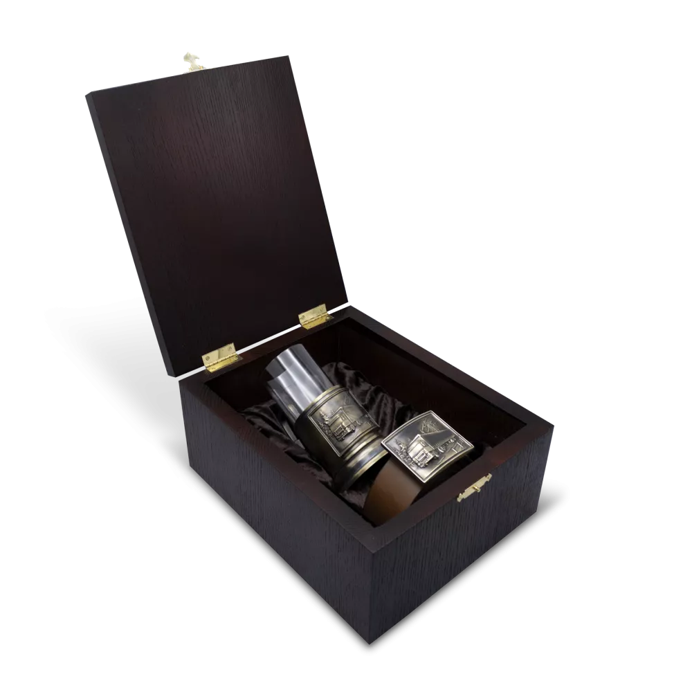 Премиальные материалы, винтажное патинирование и ручная работа превращают набор в статусную вещь, достойную стать семейной реликвией, напоминающей о верности дороге и выбранному делу.