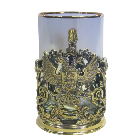 Подстаканник с гербом Российской Федерации – отличный подарок мужчине военному. Он подчеркнет патриотический настрой владельца, украсив трапезу и в профессиональный праздник, и в любые другие дни. Самый обыкновенный стакан в искусном металлическом обрамлении будет выглядеть торжественно и строго.
