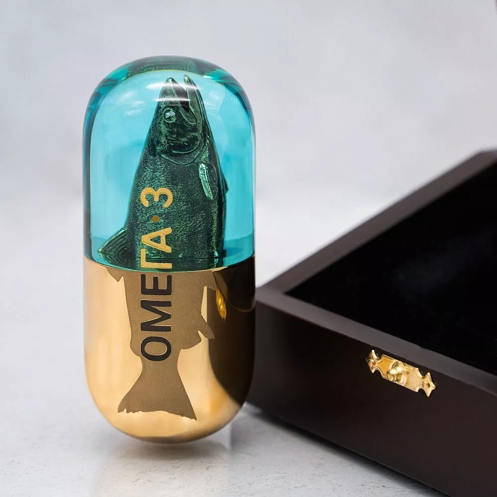 Уникальный арт-объект «Омега-3: Симфония здоровья». Искусство заботы о себе в каждой детали. Премиальный подарок для любителя здорового образа жизни, а также фармацевта или же доктора. Стильная композиция из металла с изящной рыбкой внутри — это не просто украшение, а настоящий символ заботы о здоровье и благополучии. Почему это больше, чем просто подарок?